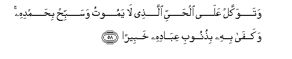 58. Na mtegemee Aliye Hai, ambaye hafi. Na umtukuze kwa sifa zake.