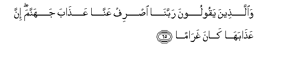 65. Na wale wanao sema: Mola wetu Mlezi! Tuondolee adhabu ya Jahannamu.