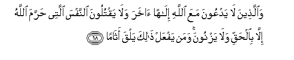 68. Na wale wasio mwomba mungu mwengine pamoja na Mwenyezi Mungu,