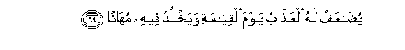 69. Atazidishiwa adhabu Siku ya Kiyama, na atadumu humo kwa kufedheheka.