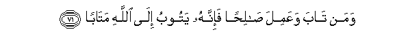 71. Na aliye tubu na akafanya mema, basi hakika huyo ametubu kweli