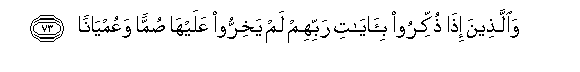 73. Na wale ambao wanapo kumbushwa Ishara za Mola wao Mlezi hawajifanyi