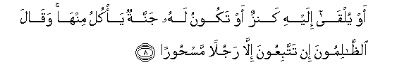 8. Au akaangushiwa khazina juu yake, au akawa na bustani ale katika