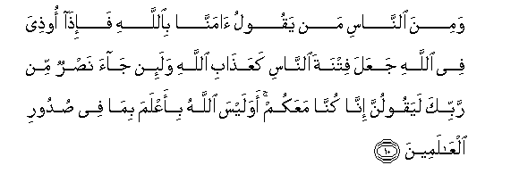 10. Na katika watu wapo wanao sema: Tumemuamini Mwenyezi Mungu. Lakini