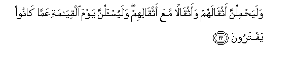 na mizigo yao. Na kwa yakini wataulizwa Siku ya Kiyama juu ya waliyo kuwa