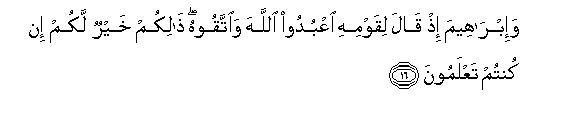 16. Na Ibrahim pale alipo waambia watu wake: Muabuduni Mwenyezi Mungu,