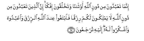 17. Hakika nyinyi mnaabudu masanamu badala ya Mwenyezi Mungu, na