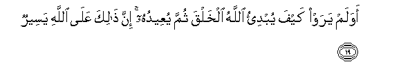 19. Je! Wao hawaoni jinsi Mwenyezi Mungu anavyo anzisha uumbaji,