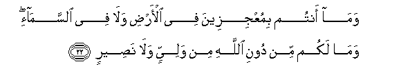 22. Na nyinyi si wenye kushinda katika ardhi wala katika mbingu.