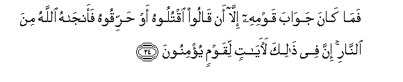 24. Basi haikuwa jawabu ya watu wake ila ni kusema: Muuweni au mchomeni