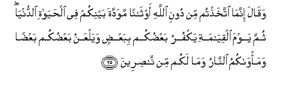 25. Na alisema: Hakika nyinyi mmeyashika masanamu badala ya Mwenyezi