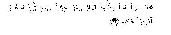 26. Lut'i akamuamini, na akasema: Mimi nahamia kwa Mola wangu Mlezi.