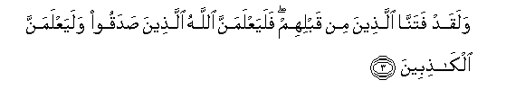 3. Hakika tuliwajaribu walio kuwa kabla yao, na kwa yakini Mwenyezi