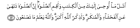 45. SOMA uliyo funuliwa katika Kitabu, na ushike Sala. Hakika Sala