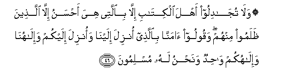 46. Wala msijadiliane na Watu wa Kitabu ila kwa njia iliyo nzuri
