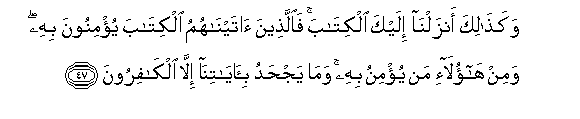 47. Na namna hivi tumekuteremshia Kitabu (cha Qur'ani). Basi wale