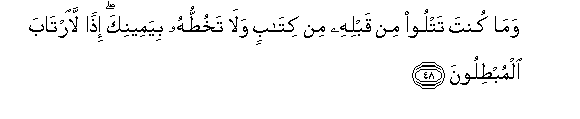 48. Na wewe hukuwa kabla yake unasoma kitabu chochote, wala hukukiandika