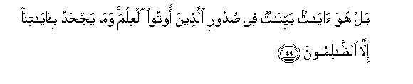 49. Bali hii (Qur'ani) ni Ishara zilizo wazi katika vifua vya walio