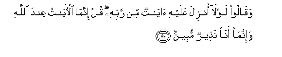 50. Na walisema: Mbona hakuteremshiwa Ishara kutoka kwa Mola wake