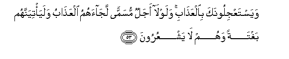 53. Na wanakuhimiza waletewe adhabu kwa haraka. Na lau kuwa hapana