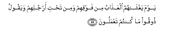 55. Siku itapo wafunika adhabu hiyo kutoka juu yao na chini ya miguu