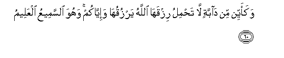 60. Na wanyama wangapi hawawezi kujimilikia riziki zao! Mwenyezi