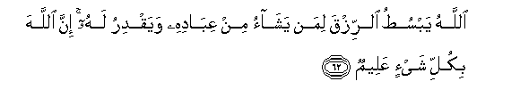 62. Mwenyezi Mungu humkunjulia, na humdhikishia, riziki amtakaye