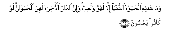 64. Na haya maisha ya dunia si chochote ila ni pumbao na mchezo.