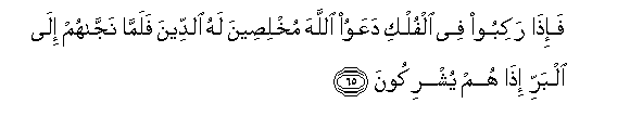 65. Na wanapo panda katika marikebu, humwomba Mwenyezi Mungu kwa