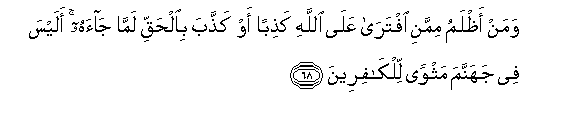 68. Na nani dhaalimu mkubwa kuliko yule anaye mzulia uwongo Mwenyezi