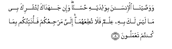 8. Na tumemuusia mwanaadamu kuwafanyia wema wazazi wake. Na ikiwa