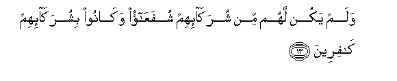 13. Wala hawatakuwa na waombezi miongoni mwa walio kuwa wakiwashirikisha