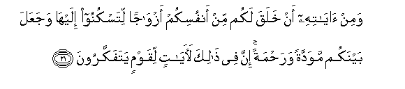 na nafsi zenu ili mpate utulivu kwao. Naye amejaalia mapenzi na huruma