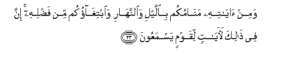 23. Na katika Ishara zake ni kulala kwenu usiku na mchana, na kutafuta