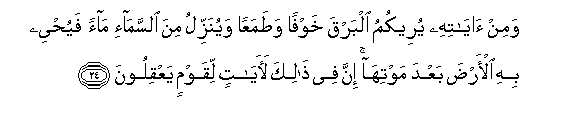 24. Na katika Ishara zake hukuonyesheni umeme kwa kukutieni khofu