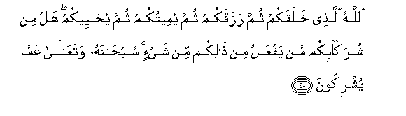 40. Mwenyezi Mungu ndiye aliye kuumbeni, kisha akakuruzukuni, kisha
