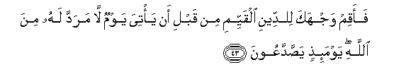 43. Basi uelekeze uso wako kwenye Dini Iliyo Nyooka kabla ya kufika