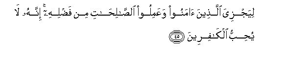 45. Ili awalipe walio amini na wakatenda mema kutokana na fadhila