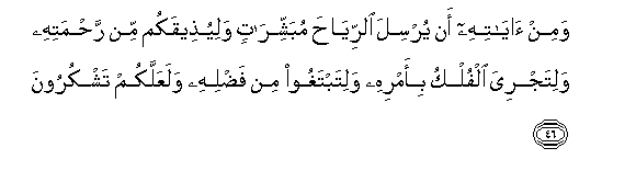 46. Na katika Ishara zake ni kuzituma pepo ziletazo bishara njema,