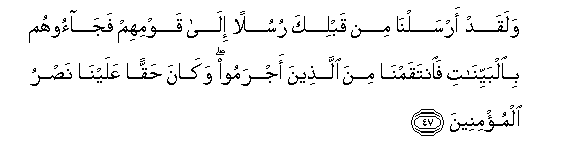 47. Na hakika tulikwisha watuma Mitume kwa kaumu zao, na wakawajia