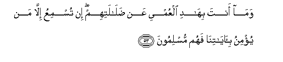 53. Wala wewe huwaongoi vipofu na upotovu wao. Huwasikilizishi ila