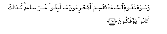 55. Na siku itapo simama Saa wakosefu wataapa kwamba hawakukaa duniani