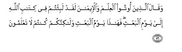 56. Na walio pewa ilimu na Imani watasema: Hakika nyinyi mlikwisha