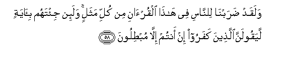 58. Na hakika tulikwisha wapigia watu kila mfano katika hii Qur'ani.