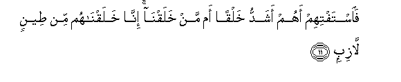 tulio waumba. Hakika Sisi tuliwaumba wao kwa udongo unao nata.