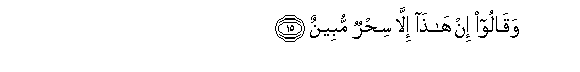 15. Na husema: Haya si chochote ila ni uchawi tu ulio dhaahiri.