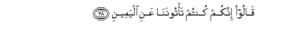 28. Watasema: Kwa hakika nyinyi mlikuwa mkitujia upande wa kulia.