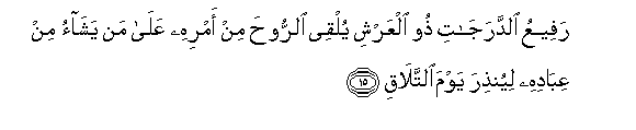 15. Yeye ndiye Mwenye vyeo vya juu, Mwenye A'rshi. Hupeleka Roho