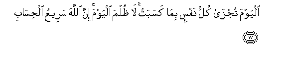 17. Leo kila nafsi italipwa kwa iliyo chuma. Hapana dhulma leo. Hakika
