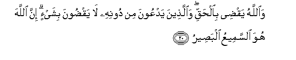 20. Na Mwenyezi Mungu huhukumu kwa haki; lakini hao wanao waomba